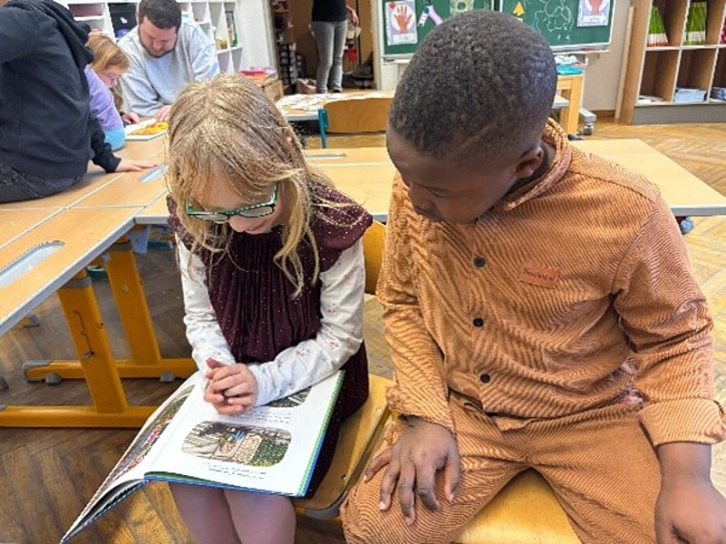 19. Dezember 2025 – Die Schüler*innen der 3a lesen den Schüler*innen der 1. Klasse vor. Im Rahmen eines besonderen Leseprojekts schlüpfen die Schüler*innen somit in die Rolle von Lesepat*innen und besuchen jeden Mittwoch die erste Klasse, um dort spannende und lustige Geschichten vorzulesen. Mit großer Vorfreude bereiten sich die Drittklässler*innen vor und wählen zuvor ihre Bücher für den besonderen Auftritt aus.