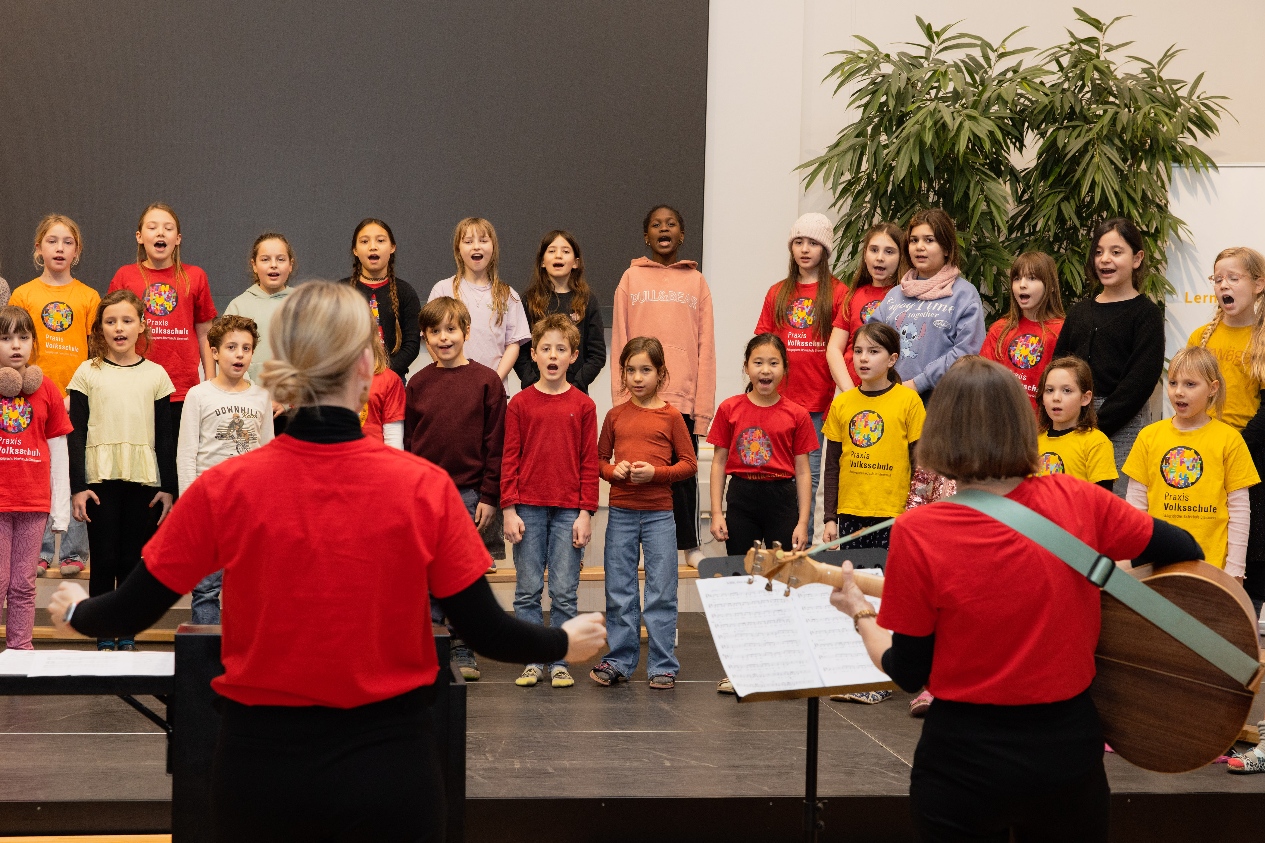 06. Februar – Am 04. Februar war es endlich so weit: Der PVS-Schulchor, heuer unter der Leitung von Dipl. Päd.in Ines William, MA und Lisa-Christina Fellner, BA BEd MA, lud zum Semesterkonzert in die Aula ein! Mit großer Vorfreude und ein wenig Lampenfieber begrüßten die 45 Sänger*innen das Publikum – Eltern, Großeltern, Freund und viele weitere Gäste. Nach einem stimmungsvollen hawaiianischen Lied hieß der Chor das zahlreich erschienene Publikum mit „Schön, dass du da bist“ herzlich willkommen.