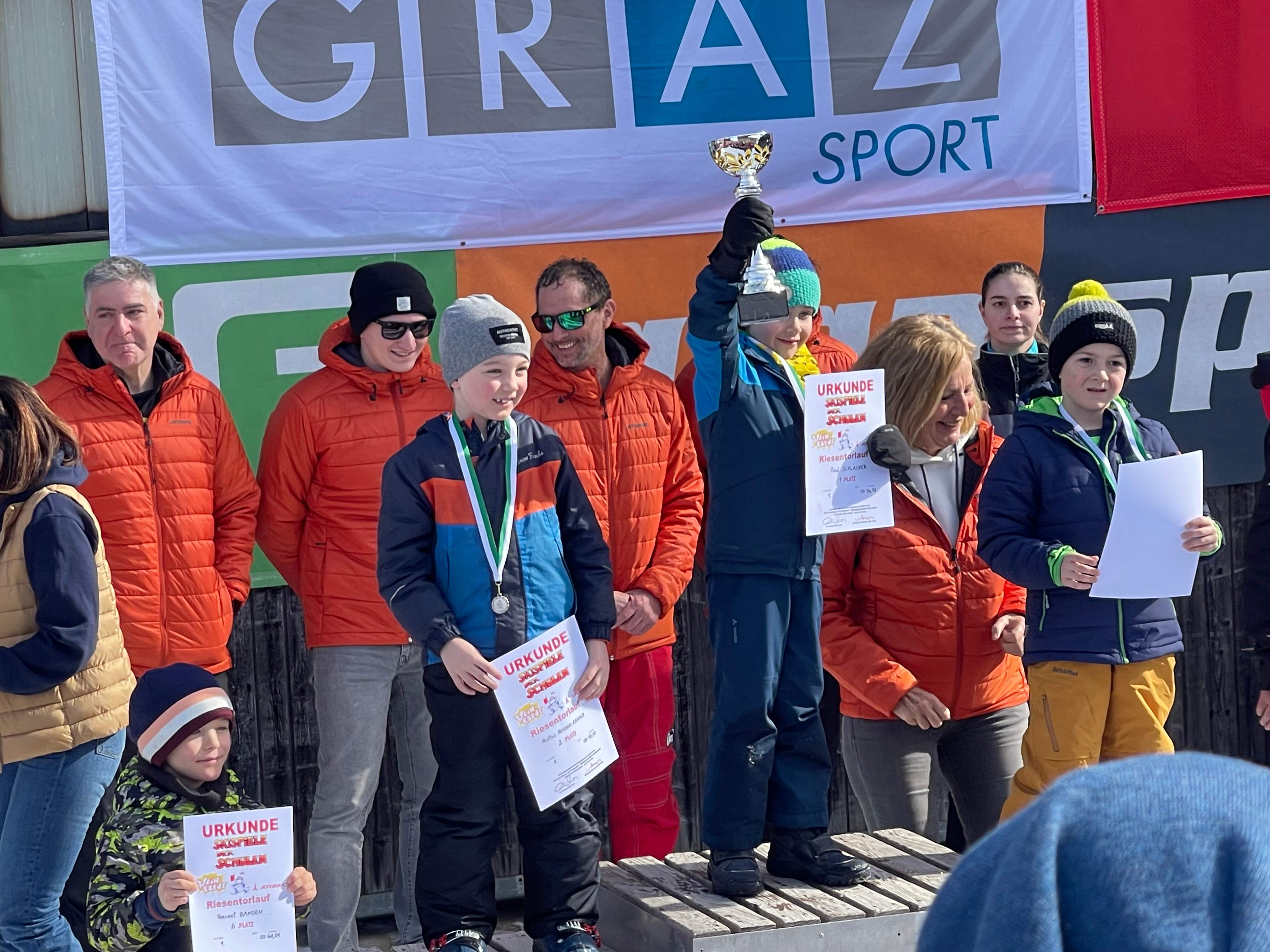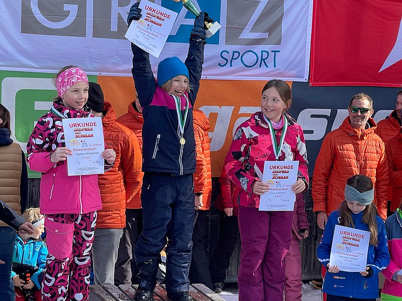 Pia Peitler (3b), Mia Kaluba-Per (MSKa), Nora Pfeffer (MSKb) und Antonia Pletschnik (3b) holten sich den 3. Platz in der Teamwertung. Unsere Erstklässler-Burschen, darunter auch Otto Kernbichler (MSKa) bekamen in der Teamwertung den 1. Platz!