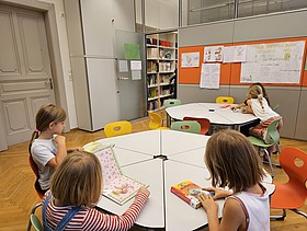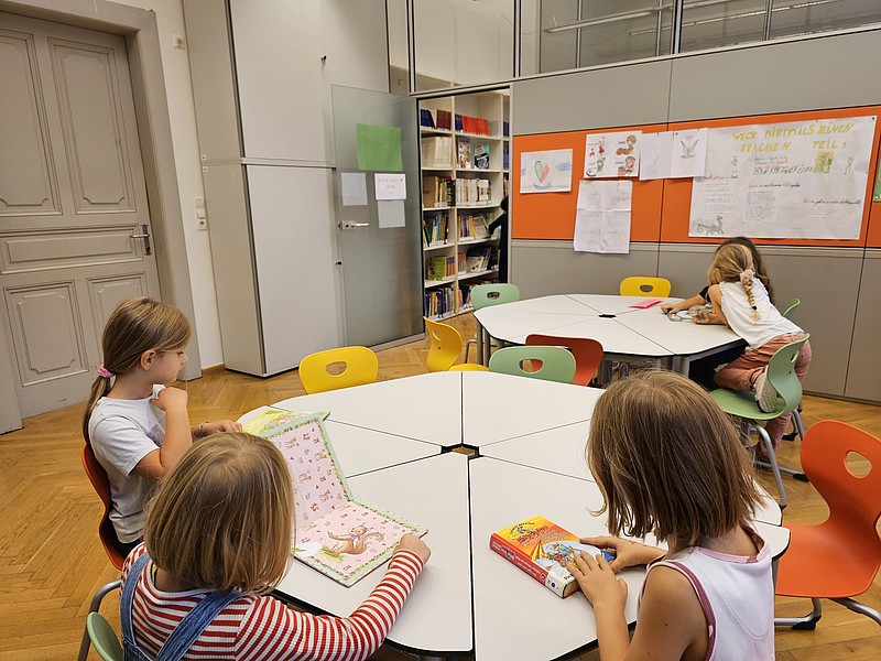 Ob spannende Abenteuer, lustige Geschichten, Sachbücher für kleine Forscher*innen oder Bilderbücher zum Träumen – unsere Bibliothek bietet eine bunte Vielfalt an Medien für alle Altersstufen. Die Kinder können in gemütlicher Atmosphäre stöbern, lesen, ausleihen und sich von neuen Welten inspirieren lassen. Auch Lehrer:innen und Studierende der Pädagogischen Hochschule nutzen die Bibliothek als wertvolle Ressource für den Unterricht und die Ausbildung.