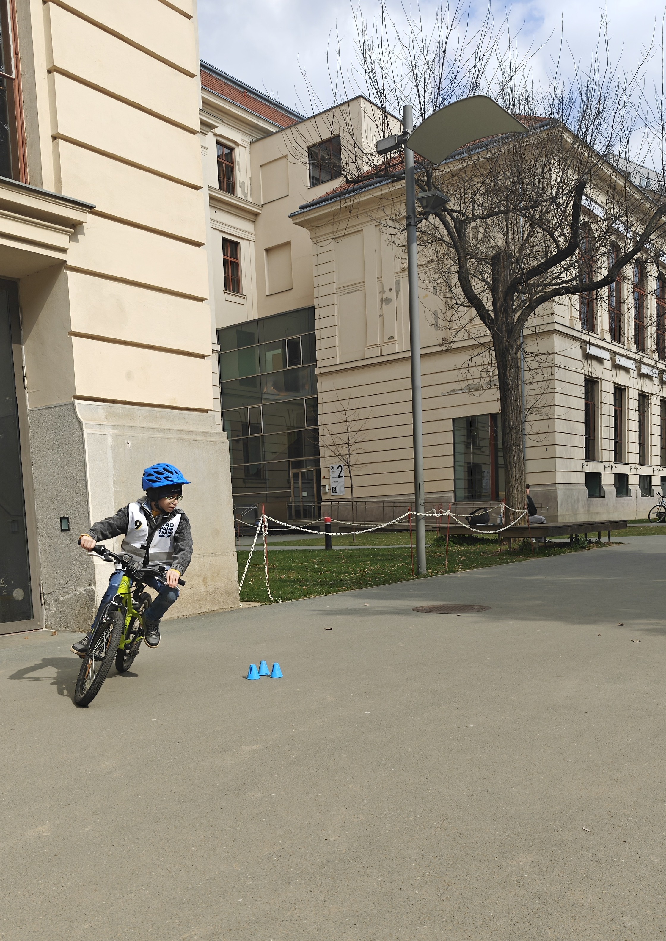 Am Beginn von so einem Training werden die Räder der Kinder überprüft. Danach fahren sie einen kleinen Parcours abseits der Straße ab, bevor sie mit den TrainerInnen auf die Straße hinausfahren. Wir bedanken uns für die tolle Arbeit!