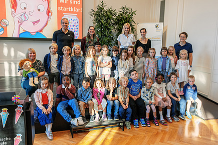 Nach unserem ersten gemeinsamen Klassenfoto und mit Mutmurmeln und Schultüte in der Hand ging es dann auch schon los in unsere Klasse. Unsere Klassenpuppe Anita begrüßte uns sehr herzlich und lud uns zu den ersten gemeinsamen Kennenlernspielen ein.