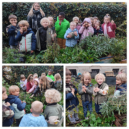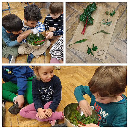Im schuleigenen Green Lab, unserem Schulgarten, machten sich die Kinder auf die Suche nach essbaren Kräutern. Mit großer Neugier wurden die Pflanzen genau unter die Lupe genommen. Die Schüler*innen rochen an den frischen Kräutern, probierten vorsichtig und entdeckten dabei die unterschiedlichen Geschmacksrichtungen. Ganz nebenbei lernten sie auch die Namen der Kräuter kennen.