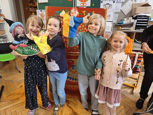 Im Rahmen eines besonderen Workshops durften unsere Schüler*innen in die faszinierende Welt des Puppentheaters eintauchen. Unter der liebevollen Anleitung von Brigitte Tatzerl wurden unsere Erstklässler*innen in das Sprechen mit Handpuppen eingeführt. Dabei lernten sie nicht nur die unterschiedlichen Puppen und ihre individuellen Charaktere kennen, sondern konnten sich auch selbst im Stimmen verstellen und im bewussten, kräftigen Sprechen ausprobieren.