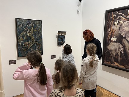 Von 10. bis 12. Februar nahmen die Kinder der 2a an einem Kunstworkshop von der KinderKunstHochschule Graz teil. Am ersten Tag besuchten wir die Neue Galerie im Joanneum. Wir erforschten die ausgestellten Kunstwerke auf Farben, Formen und Motive und gingen der Frage auf den Grund, wie die unterschiedlichen Kunstwerke auf uns wirken und welche Emotionen sie bei uns auslösen, aber auch welche Emotionen die Künstler*innen vielleicht beim Malen der Bilder gehabt haben könnten.