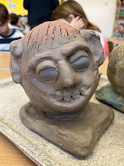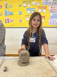 An den beiden darauffolgenden Nachmittagen arbeiteten die Kinder gemeinsam mit den Künstlerinnen Ulli Lang und Yvonne Klamant in der Schule mit Ton bzw. erforschten die Grundfarben. Aus Ton wurden Köpfe mit unterschiedlichen Gesichtsausdrucken geformt. Es wurde mit Farben experimentiert, Collagen gestaltet und ein Gemeinschaftsbild ist im Laufe der zwei Tage entstanden. Die Kinder waren sehr begeistert und sind noch mehr auf den Geschmack gekommen sich auch zuhause kreativ zu betätigen.