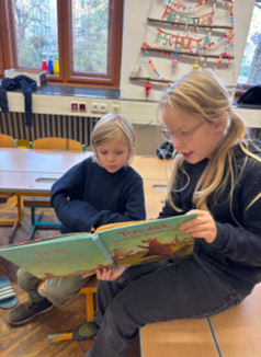 Für viele Erstklässler*innen ist es jedes Mal ein besonderes Erlebnis, den „Großen“ zuzuhören. Die Atmosphäre im Klassenraum ist jeden Mittwoch angespannt und zugleich gemütlich. Die Kinder lesen mit viel Ausdruck und Begeisterung vor – und die Kleinen hören aufmerksam zu, stellen Fragen und erzählen anschließend, was ihnen besonders gefallen hat.