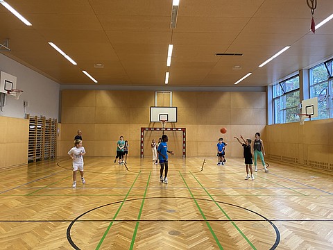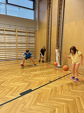 Unsere Klasse hatte zwei Basketballtrainings mit Trainerin Anna vom UBI Graz. Jedes Kind hat mindestens einen Korb geworfen - manche sogar mehrere!Wir haben auch Dribbeln, Passen und Werfen gelernt und können den Ball nun gut unter Kontrolle halten. Als Aufwärmspiel haben wir Versteinern mit der Extraregel „Dribbeln“ gespielt, was uns teilweise richtig herausgefordert hat. Am Ende eines jeden Trainings haben wir wie richtige Basketballprofis ein Match gespielt, bei dem alle ihr Bestes gegeben haben!