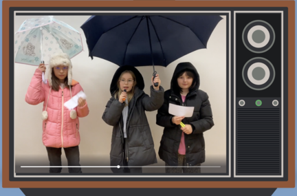 In den Englischstunden hat die 4a Klasse einen „Weather Forecast“ verfilmt. Zuerst wurden Gruppen gebildet und jede Gruppe hat ihren eigenen Forecast geschrieben. Dafür bekam jede Gruppe einen Zettel, auf dem ein Land stand und wie kalt oder warm es dort ist. Dann wurde der Text selbst geschrieben, zum Beispiel: