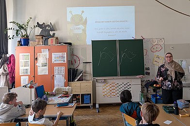 Die 4b vor Ostern nahm an einem interaktiven Workshop teil, in dem die Kinder Religionen, kulturelle Vielfalt sowie Symbole, Feste und Rituale spielerisch entdeckten. Gemeinsam wurden Themen wie Freundschaft, Respekt und ein wertschätzender Umgang mit Vielfalt erarbeitet. Mit viel Kreativität gestalteten die Schüler*innen anschließend persönliche Lesezeichen, auf denen ihre Namen in arabischer Schrift geschrieben wurden.