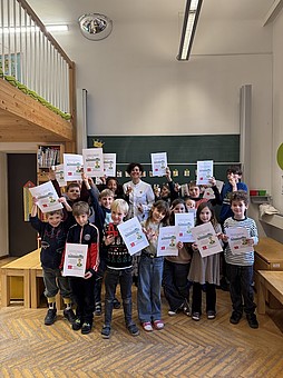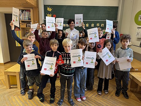 Zum Abschluss des Projekts präsentierten die Schüler*innen der MSKa-Klasse ihre Ergebnisse in den verschiedenen Klassen. Dabei erklärten sie auch, wie man die Schultasche richtig einstellt und trägt. Stolz überreichten sie die selbst erstellten Folder sowie das Plakat für das Umweltboard. Die Klassenlehrer*innen jeder Klasse erhielten das Plakat und den Folder zudem in digitaler Form, damit diese an die Eltern weitergeleitet werden können. Die Kinder waren sehr stolz auf ihre Arbeit und erhielten viel positive Rückmeldung von den anderen Klassen.