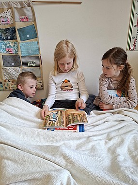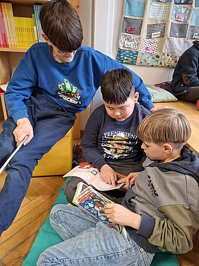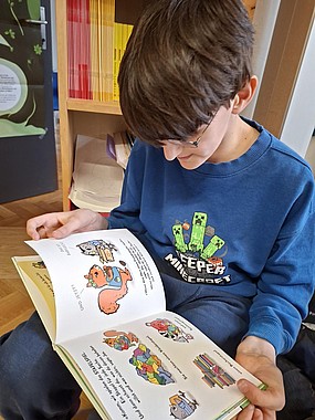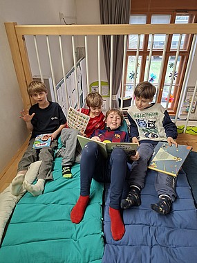 Am 26.03.2026, dem Österreichischen Vorlesetag, durften die Kinder der MSKa-Klasse ihr absolutes Lieblingsbuch mitbringen. Im Sitzkreis stellte jedes Kind sein Buch kurz vor. Anschließend trafen sich die Schülerinnen und Schüler, um sich gegenseitig vorzulesen. Manche machten es sich am Kobel gemütlich, andere mit Decken und Pölstern im Klassenzimmer oder im Nebenraum.