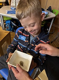 Um die Entwicklung unseres heimischen Zweipunkt-Marienkäfers von der Larve zum erwachsenen Tier beobachten zu können, züchteten wir, die Schüler*innen der MSKa eigene Marienkäfer. Über einen Monat lang konnten wir das Wunder der Metamorphose beobachten. Das war ein Erlebnis. Die Marienkäferlarven kamen in einer Aufzucht Box in einem sogenannten Vivarium zu uns in die Klasse. Wir richteten ein gemütliches Marienkäferzimmer für unsere Larven ein. Die Larven waren am Anfang winzig klein. Wir fütterten sie mit Blattläusen, die wir im Greenlab in unserem Schulgarten sammelten. Nach ein paar Tagen häuteten sich die Larven. Das war toll zu beobachten. Über vier Larvenstadien wuchsen sie weiter heran, bis schließlich die Verpuppung einsetzte. Nach ungefähr einer Woche schlüpften die noch farblosen Käfer und ließen ihre leeren Hüllen zurück. Das war eine Aufregung. Wir konnten es mit unserer Lupe genau beobachten. Nach wenigen Stunden färbten sich die Käfer rot und die Punkte wurden sichtbar. Nun mussten wir die Marienkäfer gut verpflegen und mit Blattläusen und Rosinen füttern. Nach zwei Tagen brachten wir die Marienkäfer in unseren Schulgarten, in unser Greenlab, um sie dort in die Natur zu entlassen. Dieses Projekt wird uns lange in Erinnerung bleiben!