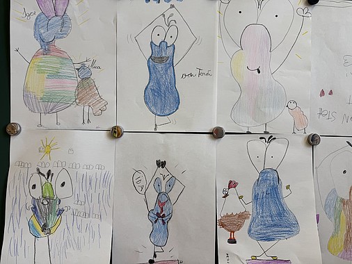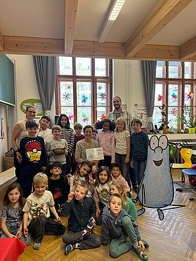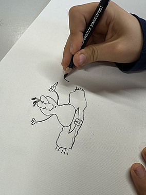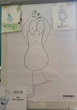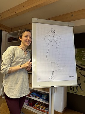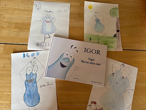 Die Autorin beantwortete alle Fragen geduldig und gab spannende Einblicke in ihre Arbeit. Ein besonderes Highlight war, dass Michaela Töscher auch ihre eigenen Illustrationen präsentierte. Sie zeigte uns Schritt für Schritt, wie sie die Figur „Igor“ zeichnet. Anschließend durften wir selbst kreativ werden und Igor in verschiedenen Yogapositionen zeichnen – das machte allen großen Spaß!