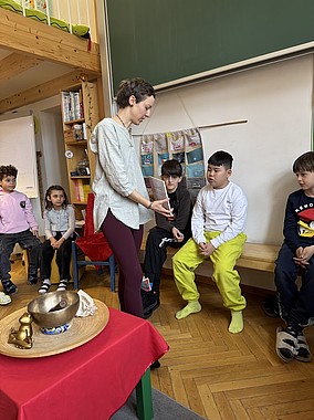 Von Anfang an wurden wir aktiv in die Lesung einbezogen, machten Yoga- und Atemübungen und lösten spannende Fragen und Rätsel. So wurde die Geschichte lebendig und alle waren mit Begeisterung dabei. Nach der Lesung waren wir besonders neugierig und stellten viele interessante Fragen.