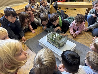 Einen ganz besonderen Vormittag erlebten unsere Schüler*innen, als das „Schwimmende Klassenzimmer“ bei uns zu Gast war! Dr.in Prietl vom Umwelt-Bildungs-Zentrum (UBZ) nahm die Kinder mit auf eine spannende Entdeckungsreise in die Welt unserer heimischen Gewässer. Mit großem Staunen betrachteten die Schüler*innen verschiedene Wassertiere aus nächster Nähe – darunter auch Wasserschnecken, die sogenannten „Spitzschlammschnecken“. Besonders aufregend war die Begegnung mit dem lebenden Flusskrebs namens „Poldi“. Anhand von „Poldi“ erklärte Dr.in Prietl anschaulich den Körperbau, die Lebensweise und auch die Gefährdung dieser faszinierenden Tiere. Die Kinder stellten viele neugierige Fragen und hörten mit großem Interesse zu. Es war ein lehrreicher und spannender Vormittag, voller neuer Eindrücke und vieler „Wow“-Momente! Ein herzliches Dankeschön an Dr.in Prietl und das UBZ für diesen tollen Bes