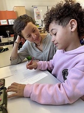 Heute durften die Schüler*innen der 3. Klassenstufe der MSK a und b bei einem Workshop von FABulous Exploring wertvolle Erfahrungen mit dem Programmieren und der Arbeit mit einem Schneideplotter sammeln. Der Plotter, der von ihnen zunächst fachmännisch programmiert wurde, schnitt ganz exakt geometrische Figuren aus. Aus den zugeschnittenen Motiven gestalteten die Kinder lustige Grußkarten, die sie dann mit nach Hause nehmen durften.